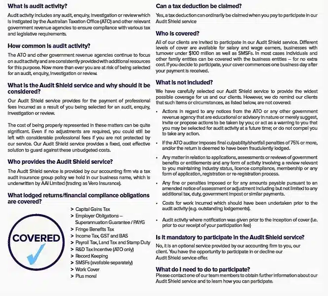 For more information, go to our Audit Shield page or contact us on: P: 03 9458 4211 E: info@ajbuckingham.com.au